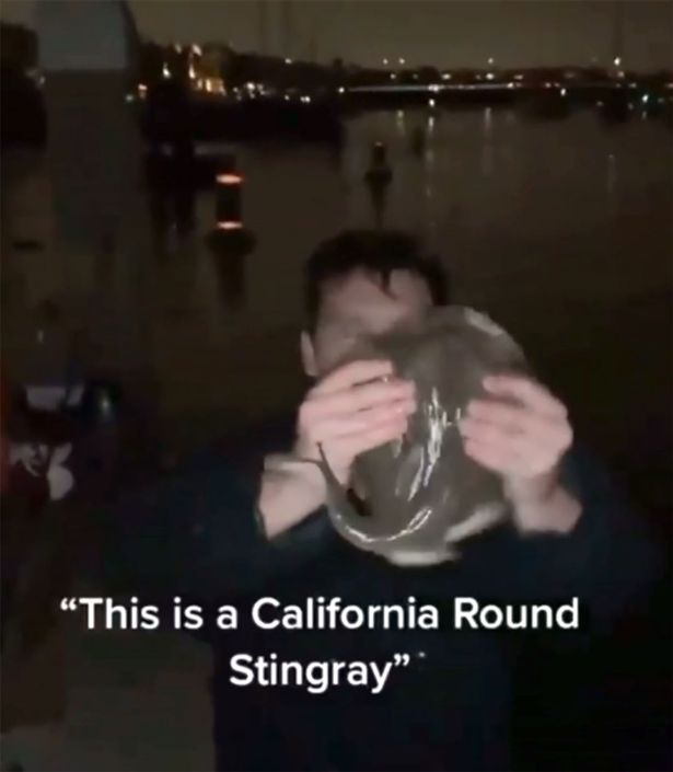 I videoen, der er gået viralt, ser man, at rokken kæmper for at komme fri af mandens greb. På et tidspunkt ser man, den giver ham et stik med halen. Det skriver det britiske medie Daily Star.