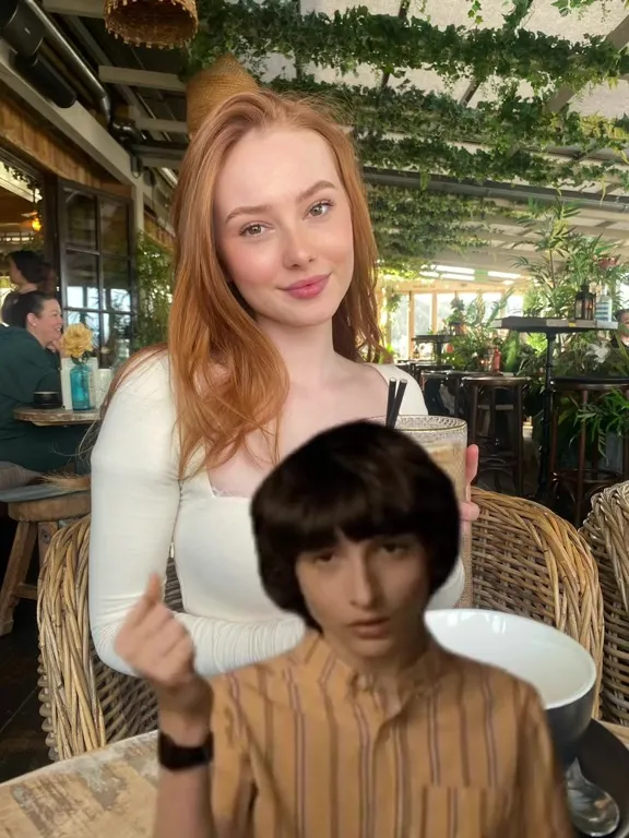Sophie klipper derefter over til et billede af hende på en helt anden dag, hvor hun viser sit naturlige hår. Desuden lader hun også håret falde på en helt anden måde.
