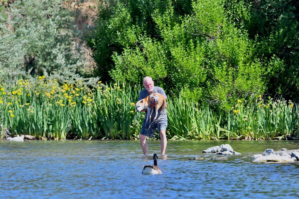 I sommer fik en særlig fotoserie på Facebook stor opmærksomhed. Billederne viser en mand, der ønsker at køle sin hund ned i sommervarmen.