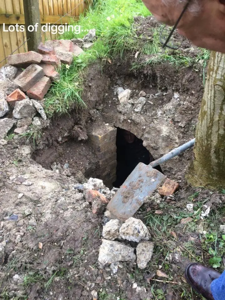 Hun fortsætter derefter med at dele en række billeder af deres opdagelse. Parret har dog været nødt til at grave en del, inden de har fået adgang til beskyttelsesrummet under græsplænen i deres have.