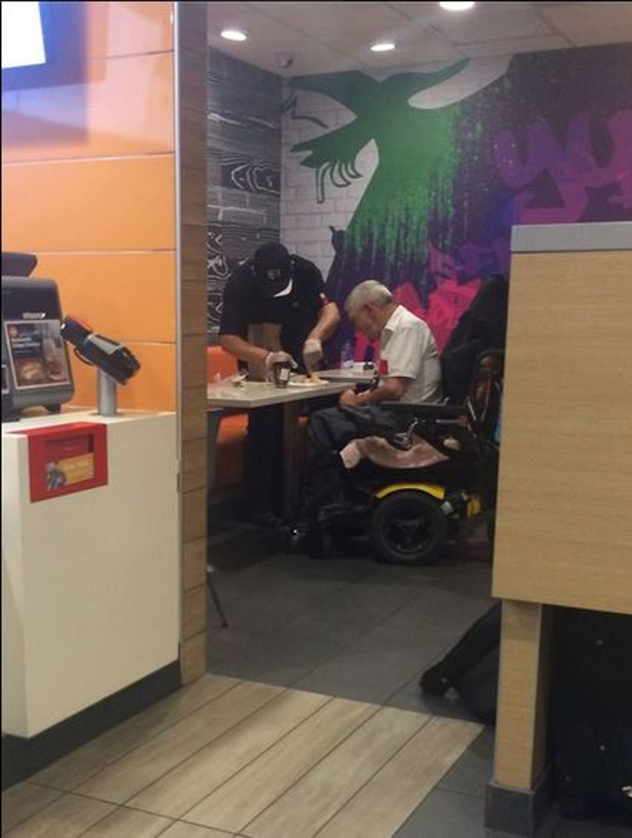 “Denne medarbejder, som satte alt på standby for denne mand, gik ud over sit ansvar for at hjælpe denne handicappede kunde. Det var det venligste og mest ydmyge, jeg nogensinde havde set.”