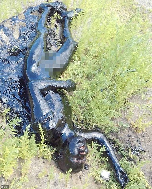 Manden var ude og gå en tur, nær et nedlagt asfaltværk i Rusland. På sin tur snubler manden og falder uheldigvis ned i tjæren. Det beretter Daily Mail.