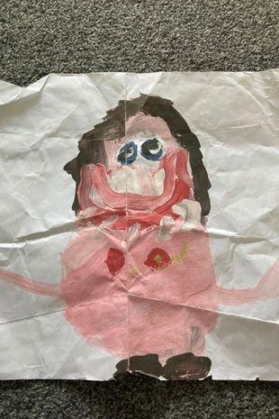 Nikki Britton var i færd med at rydde op derhjemme, da hun faldt over en tegning, som hendes søn, Jack, havde tegnet af hende, da han gik i indskoling. På tegning ser man en kvinde med brunt hår og et stort smil, der kun er iført et par sko.
