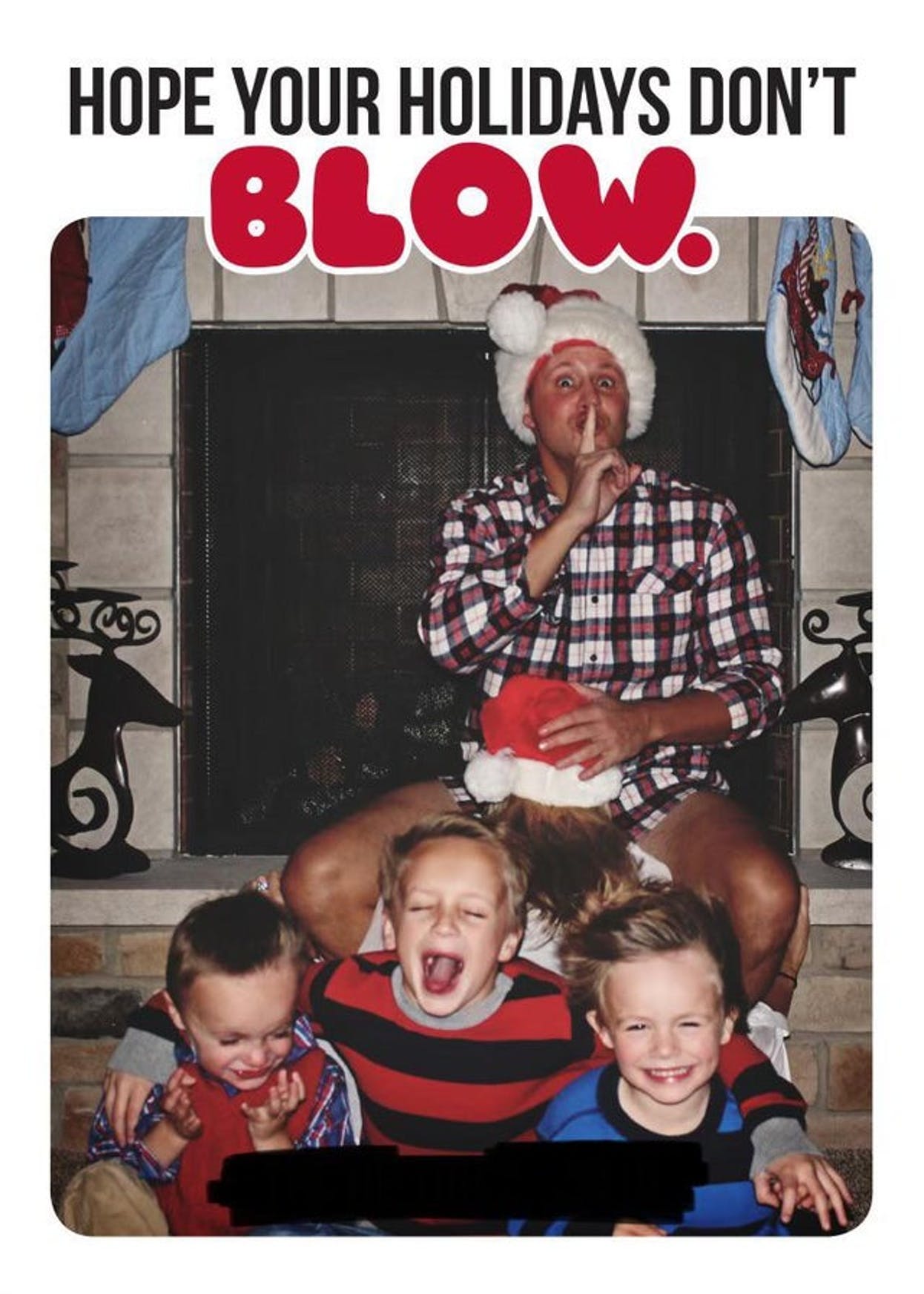 På kortet står der “Hope ypur Holidays don’t blow”.