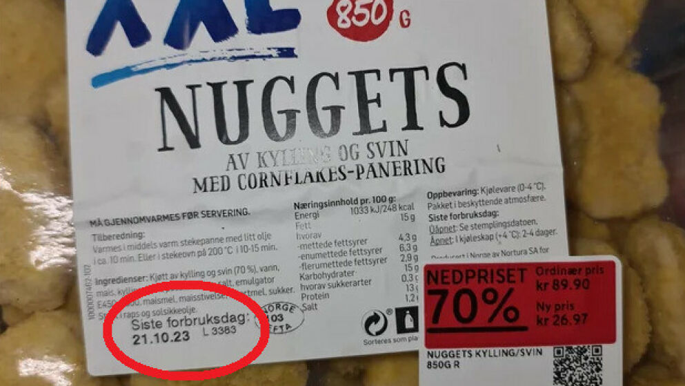 Den 25. oktober delte en Reddit-bruger et billede af en pakke nuggets fra Rema 1000 med spørgsmålet om, hvorvidt butikker lovligt kan sælge varer, der længe har passet udløbsdatoen.