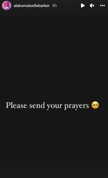 Barkers 16-årige datter, Alabama Luella Barker, bad sine følgere om at alle jeres bønner i en Instagram-historie, som blev offentliggjort tirsdag aften.