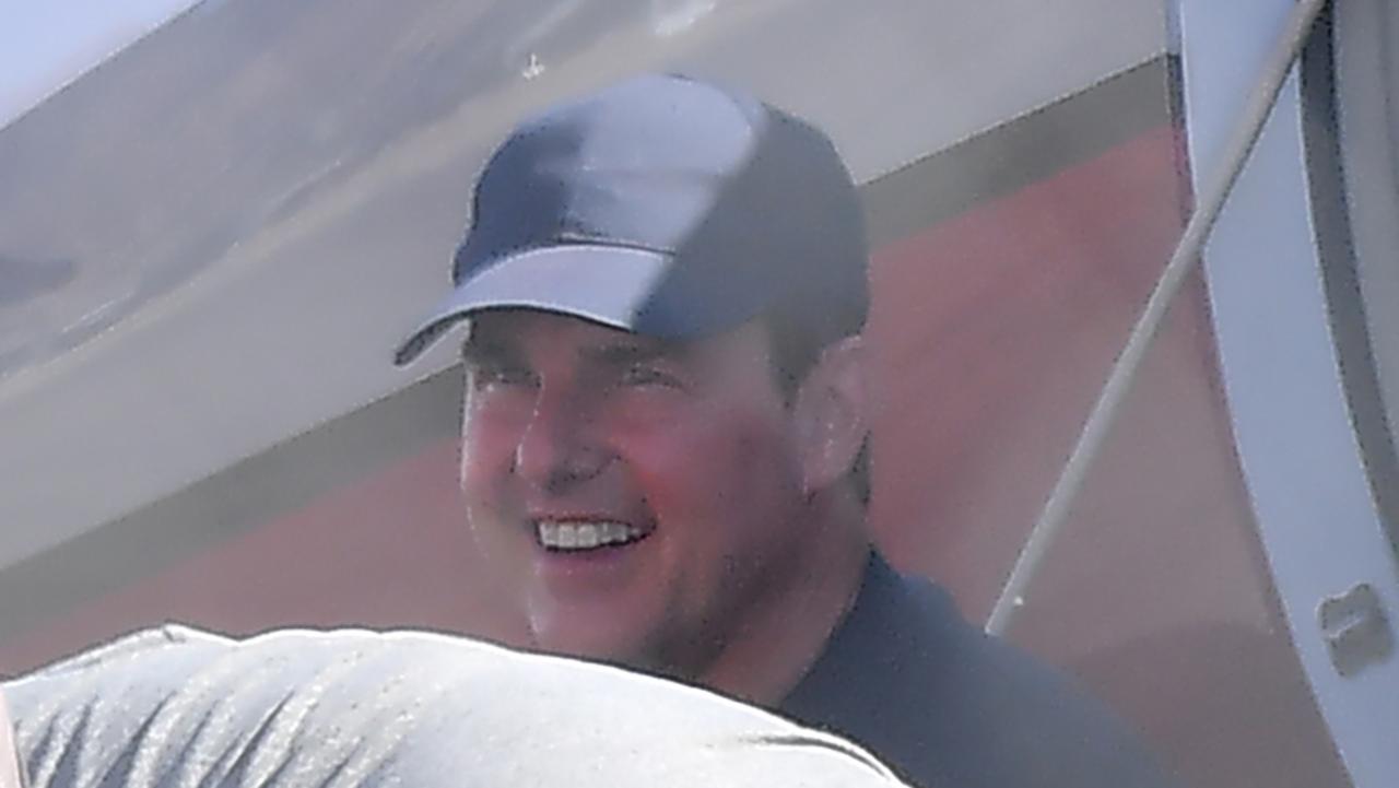 Top Gun-stjernen landede i Los Angeles, hvor han kom flyvende i sit eget fly. Han kørte derefter væk fra lufthavnen på en rød læderjakke, mens han var iført en læderjakke.