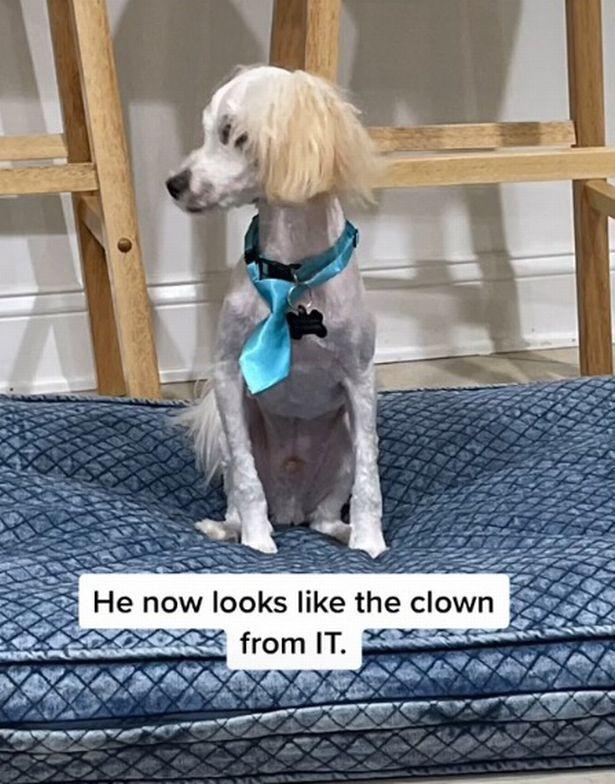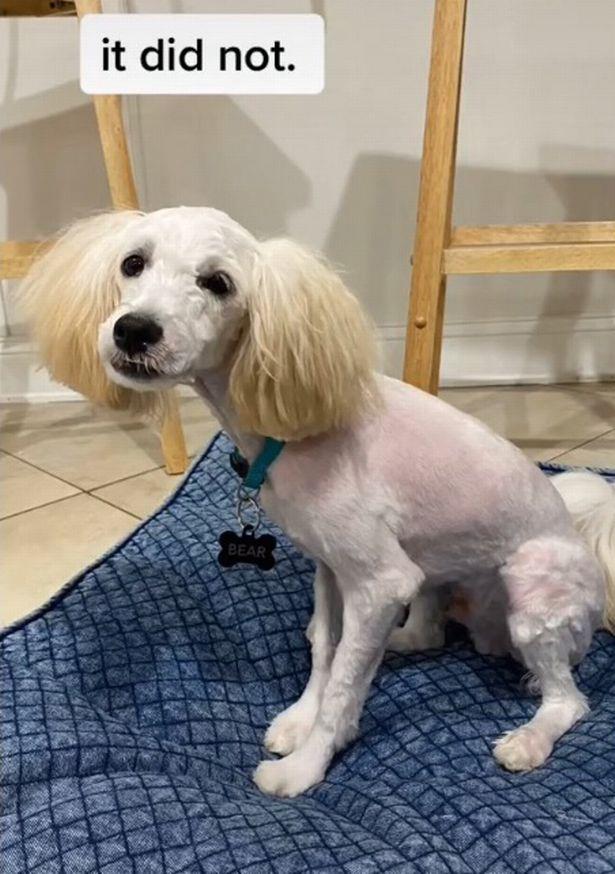 Bear, som hunden heddder, der er en Goldendoddle, en krydsning mellem en Golden Retriever og en puddel, fik et helt andet look efter besøget.