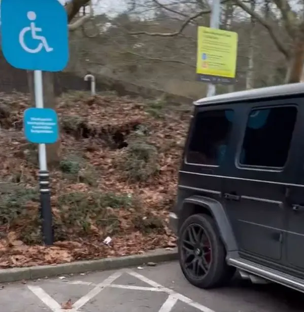 I en video, der også er blevet delt på det sociale medie, sidder han i sin milliondyre Mercedes G-klasse. I videoen ser man også tydeligt, at han har parkeret på en handicapplads foran et supermarked.