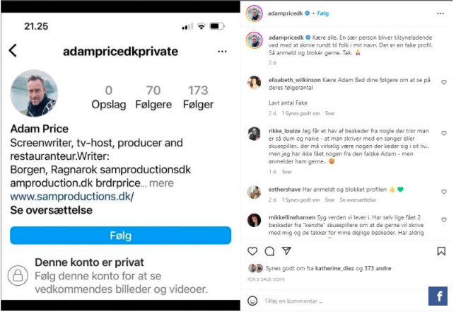 Men den helt store forskel er, at Adam Price har knap 40.000 følgere på hans profil, mens den falske kun har 70 følgere.