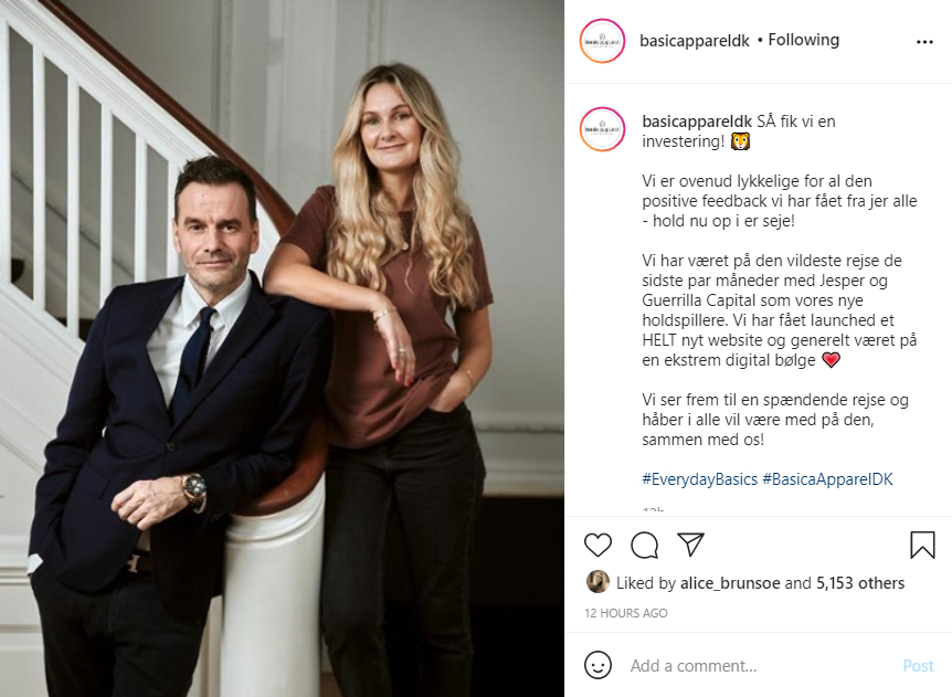Torsdag aften var tøj virksomheden Basic Apparel i Løvens Hule, for at få en investor i hus – og det fik de. Jesper Buch investerede to millioner kroner for 23 procent af virksomheden.