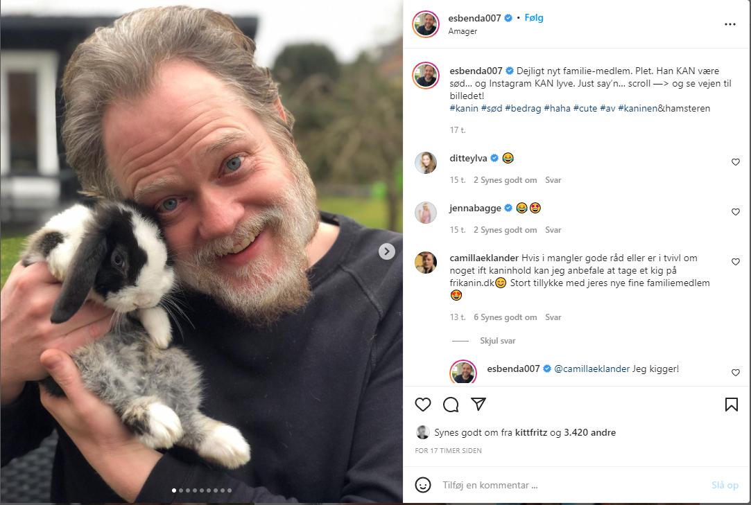 Sådan lyder det i det seneste Instagram-opslag fra skuespilleren Esben Dalgaard.