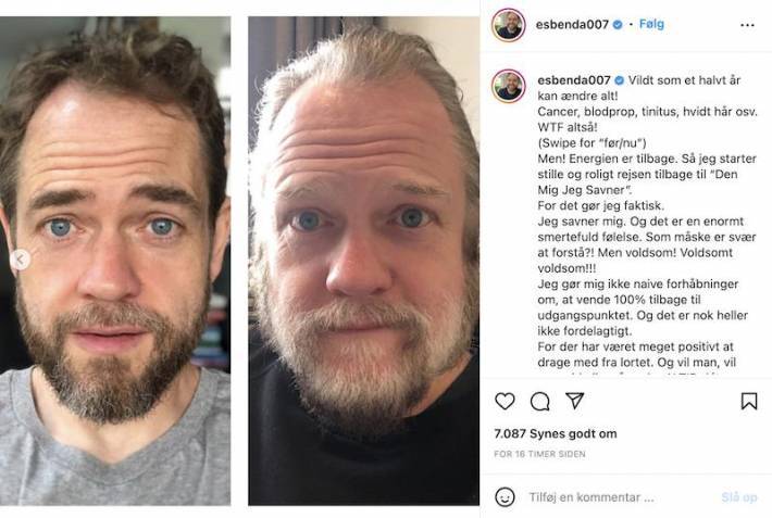 “Energien er tilbage. Så jeg starter stille og roligt rejsen tilbage til ‘Den Mig Jeg Savner’. For det gør jeg faktisk. Jeg savner mig. Og det er en enormt smertefuld følelse. Som måske er svær at forstå?! Men voldsom! Voldsomt voldsom,” lød det fra Esben Dalgaard.