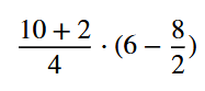 Nu skal vi finde værdien af brøken 10 + 2/4. Først lægger vi tallene i tælleren sammen (10 + 2), hvilket giver 12. Det dividerer vi med 4, og her bliver resultatet 3.