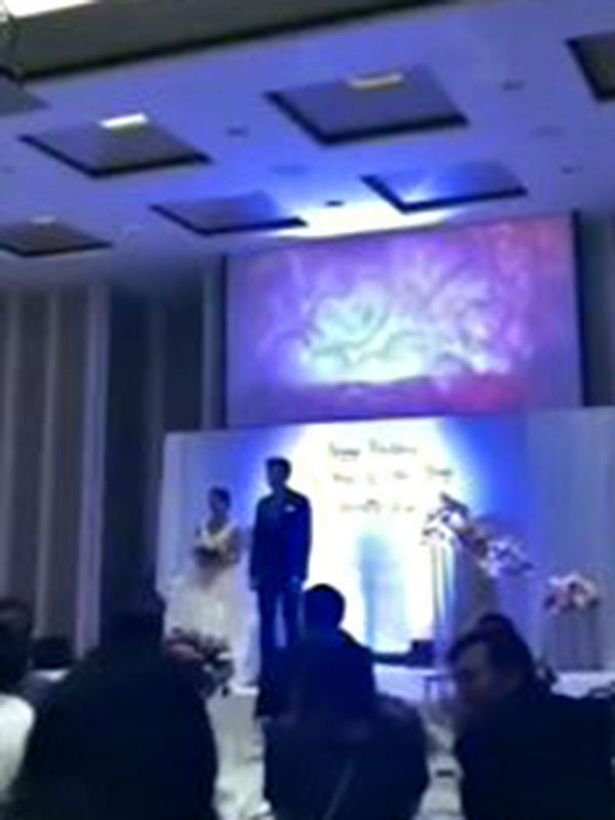 Det er blevet beskrevet, at bruden blev helt rød i ansigtet og hun kastede sin buket efter brudgommen, mens deres gæster skyndte sig hen til scenen for at adskille parret.