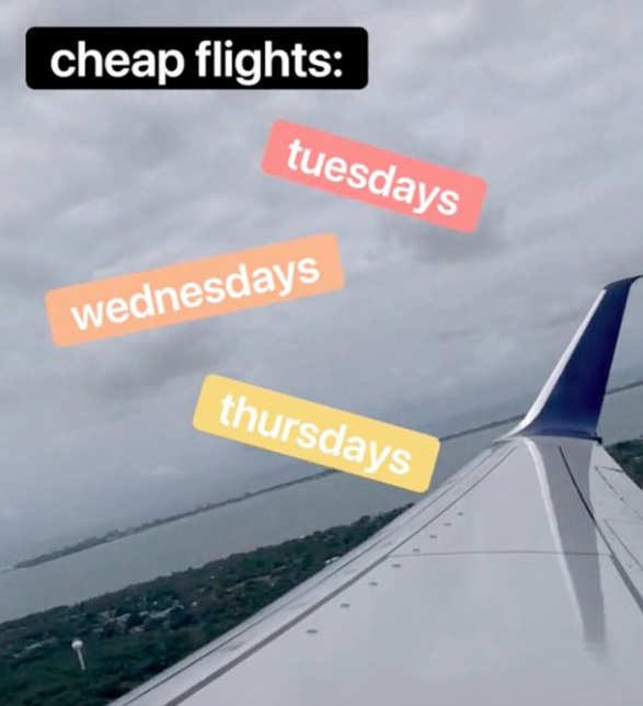 Hun delte rejsehacksene på TikTok og sagde, at de billigste dage at lede efter fly vil være enten på en tirsdag, onsdag eller torsdag.