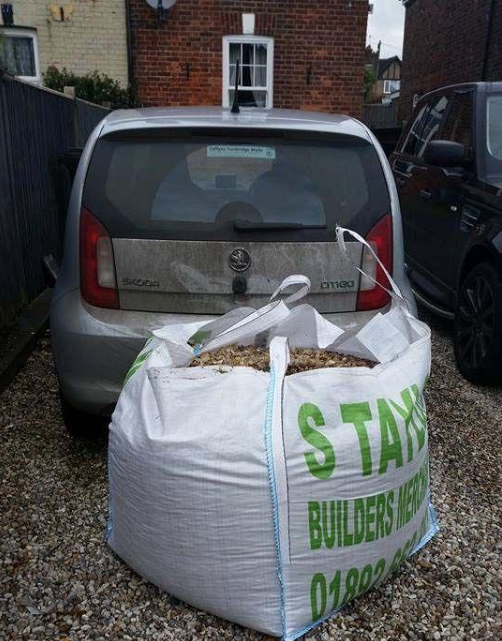 Julie kontaktede grusfirmaet og bad dem tømme en stor sæk grus lige bag bilen. Sammen med gruset efterlod hun en seddel med en humoristisk besked: